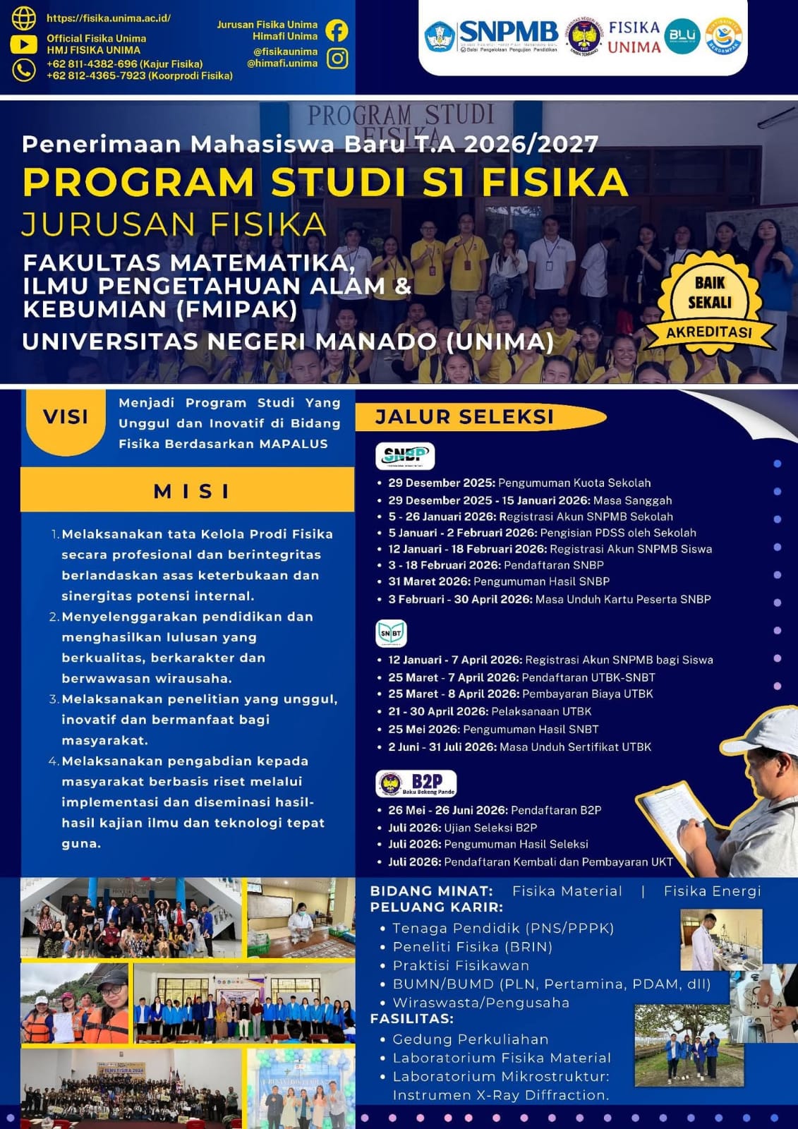 Menjadi Program Studi yang unggul dan inovatif berdasarkan Mapalus dalam pengembangan dan penerapan Ilmu Fisika.